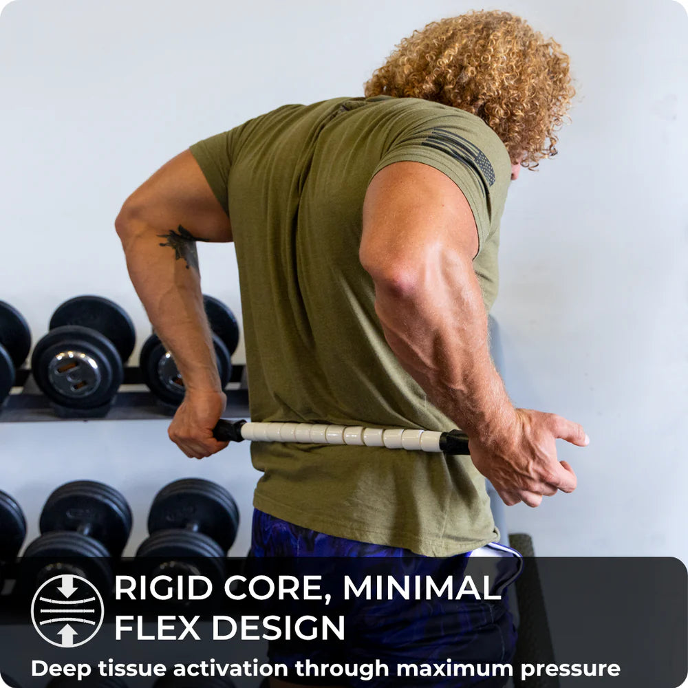 The Stiff Stick features a rigid core with minimal flexibility, great for athletes desiring deep tissue activation through maximum pressure.